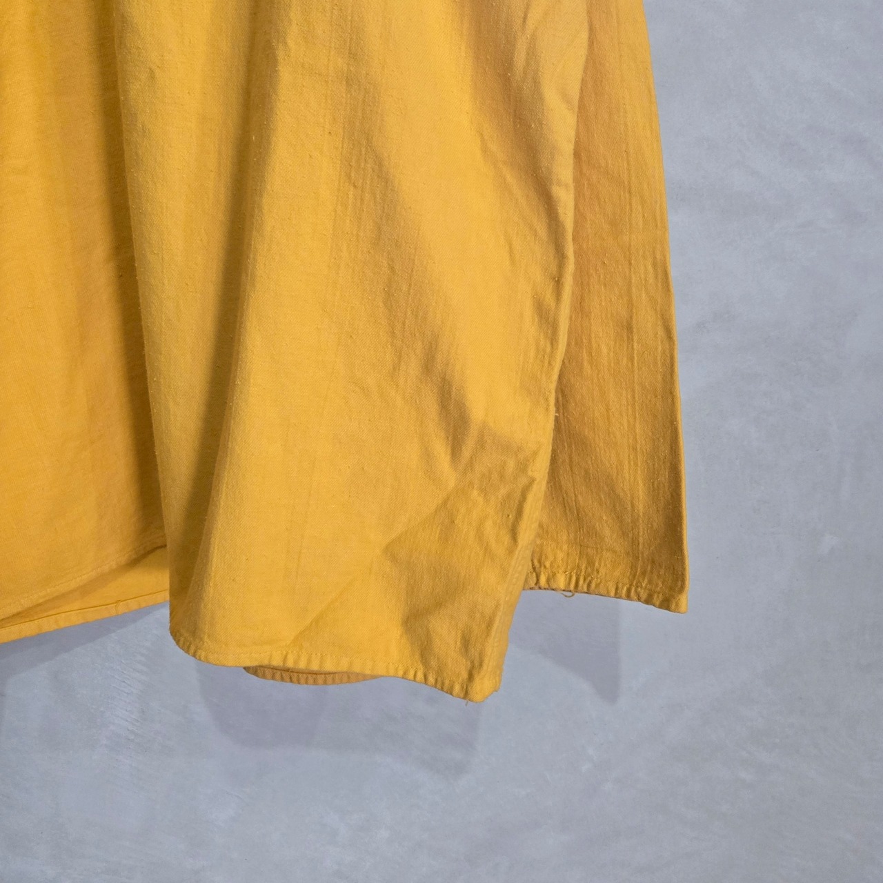 元々はホワイトの生地ですが、染め職人に丁寧にイエロー染めを施していただきました。